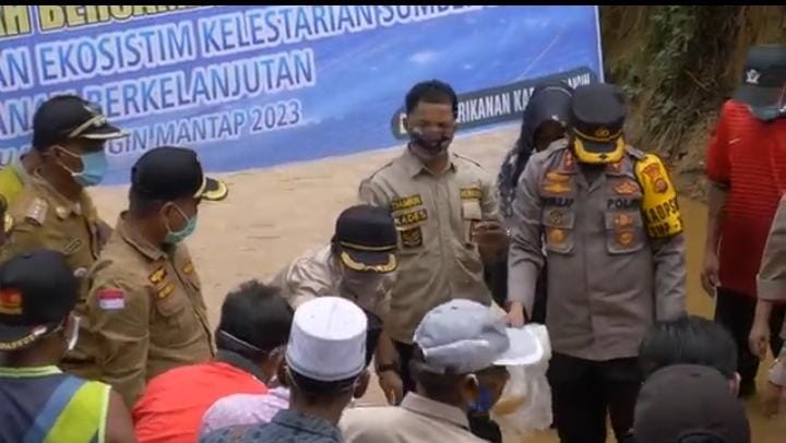 JAMBIPRIMA.COM, MERANGIN- Pada hari Selasa, 26 Januari 2021, pukul 11.30 WIB, Kapolres Merangin, AKBP Irwan Andy Purnamawan, S.I.K, bersama Wakil Bupati Merangin H. Mashuri, didampingi oleh Kapolsek Bangko dan KBO Sat Intelkam Polres Merangin telah melaksanakan kegiatan Penebaran benih ikan (restocking) dalam rangka pemulihan ekosistim sumber daya perikanan di Lubuk Larangan Desa Baru Nalo, Kecamatan Batang Masumai, Kabupaten Merangin.