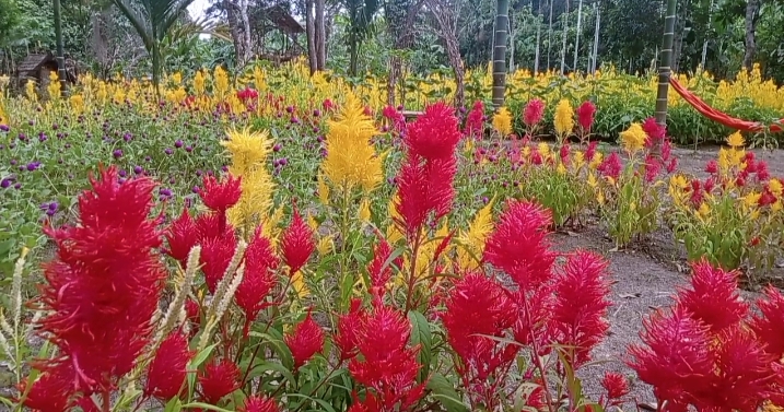 JAMBIPRIMA.COM, MUARO JAMBI - Di kawasan Kompleks Percandian Muaro Jambi, ada sebuah taman wisata baru yang sangat menarik perhatian untuk spot foto. Taman tersebut yakni Taman Bunga Celosia.