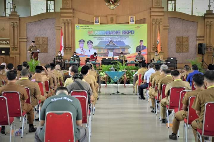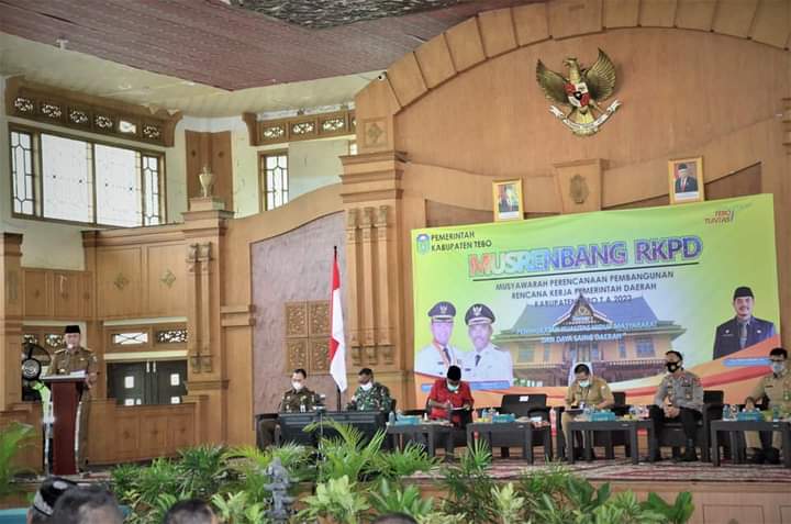 JAMBIPRIMA.COM, TEBO - Pemerintah Kabupaten (Pemkab) Tebo menggelar Musyawarah Perencanaan Pembangunan Rencana Kerja Perangkat Daerah ( Musrenbang RKPD ) Tahun 2022 di Aula Utama Kantor Bupati Tebo, Senin (29/3).