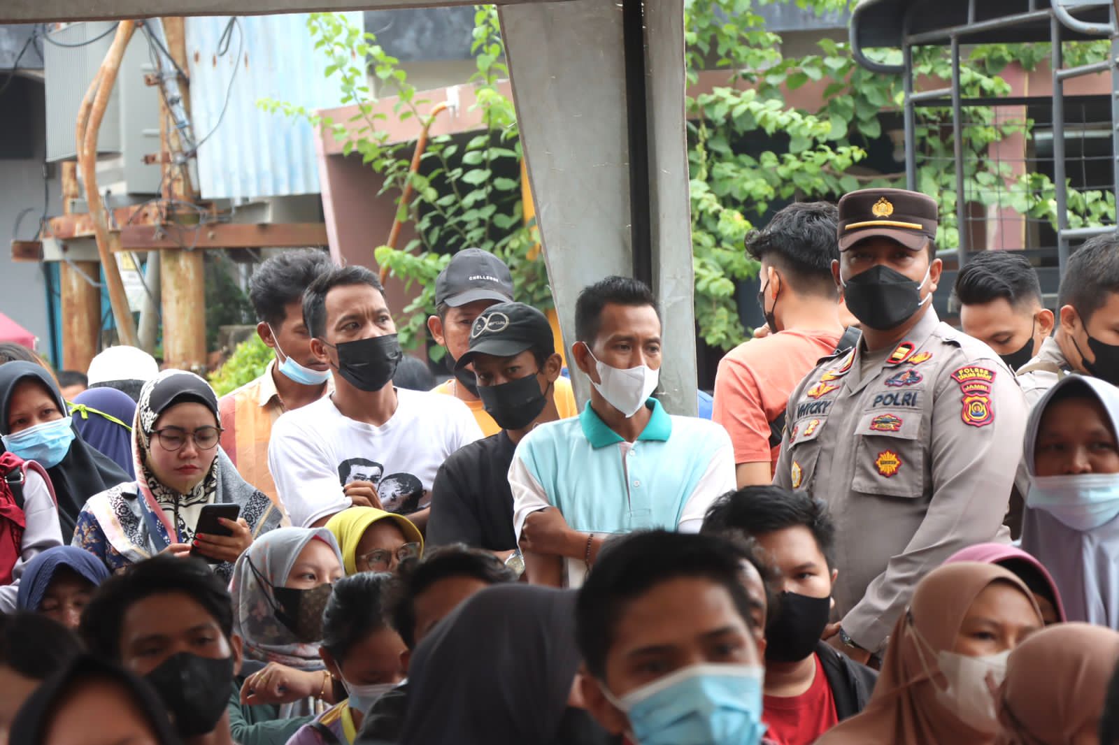 JAMBIPRIMA.COM, TANJABBAR - Kepolisian Resor Kabupaten Tanjung Jabung Barat, Provinsi Jambi untuk kedua kalinya melaksanakan vaksinasi di Simpang 4 Ojek RT 02 Gang Sentral, Kelurahan Kampung Nelayan, Kecamatan Tungkal Ilir, Kabupaten Tanjung Jabung Barat, Jambi, Jum'at (10/12/21).