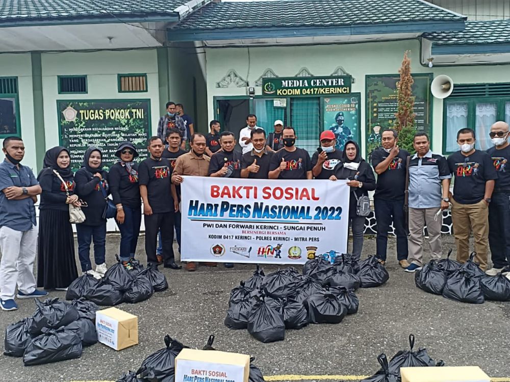 JAMBIPRIMA.COM, KERINCI - Dalam rangka puncak peringatan Hari Pers Nasional (HPN) tahun 2022, Persatuan Wartawan Indonesia (PWI) dan Forum Wartawan Harian (FORWARI) Kerinci-Sungaipenuh gelar Bakti Sosial, Rabu (9/2).