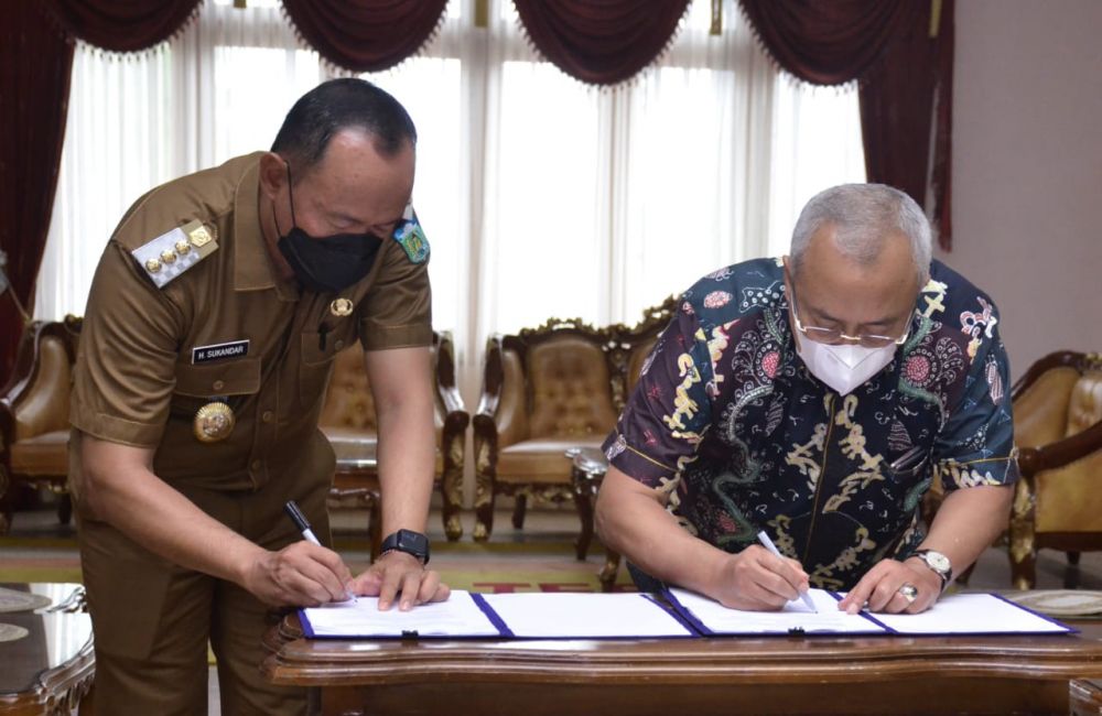 Penandatanganan NPHD dilakukan Bupati Tebo Dr. H. Sukandar, S. Kom, M.Si dengan Sekjen Bawaslu RI DR. Gunawan Suswantoro SH, M.Si di Rumah Dinas Bupati, Selasa pagi (8/3).