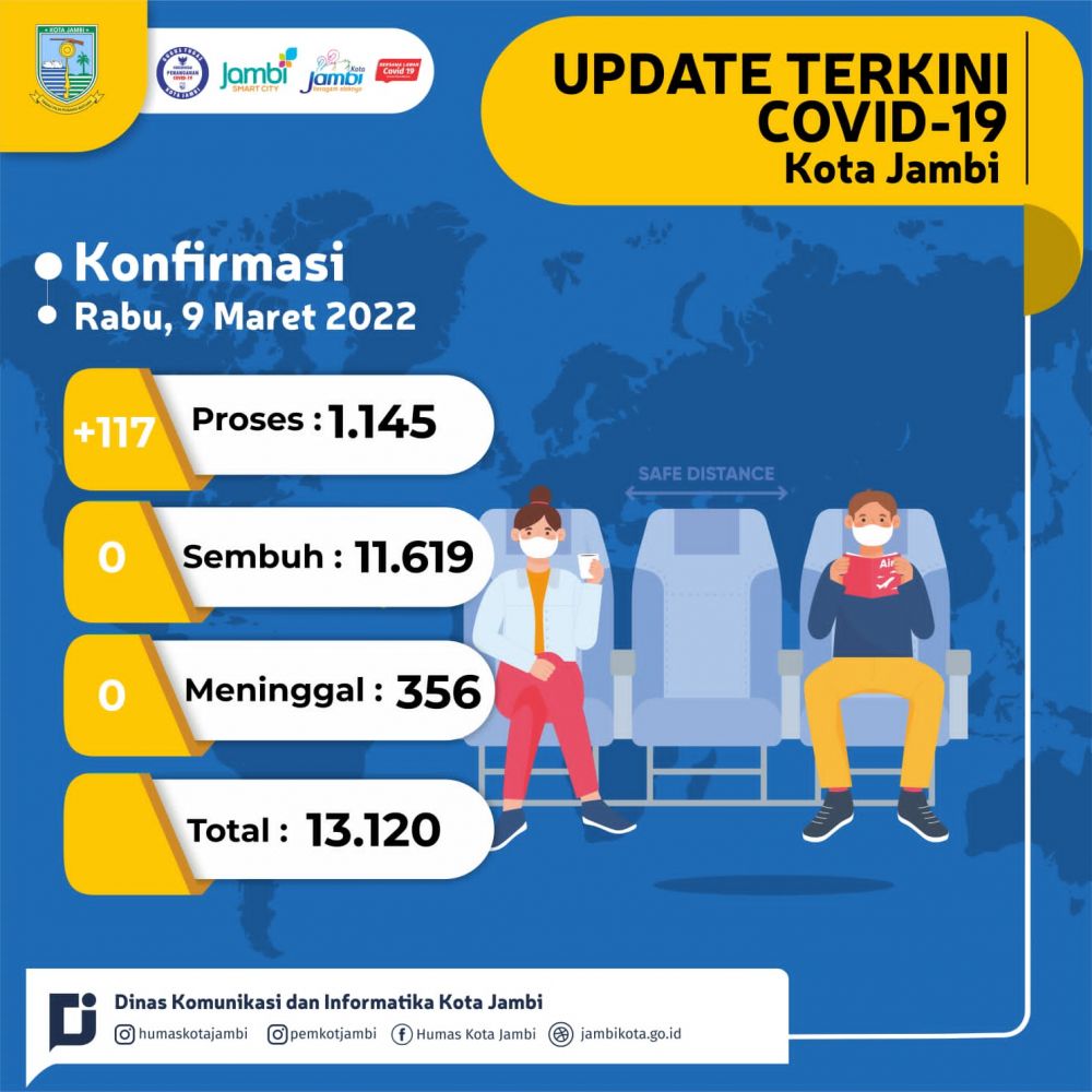 JAMBIPRIMA.COM, KOTA JAMBI - Kasus Covid-19 di Kota Jambi tercatat ada 1.028 kasus pada 8 Meret 2022, jumlah tersebut terus menurun sejak 3 Meret lalu yang mencapai 1.615 kasus.