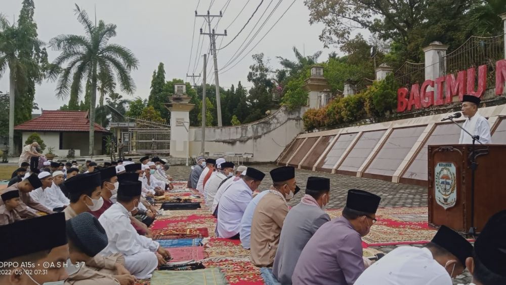 Hal tersebut sebagaimana dikatakan Bupati Merangin H Mashuri, sebelum melakukan Sholat Idul Fitri 1443 H di halaman depan Kantor Bupati Merangin, Senin (02/5).