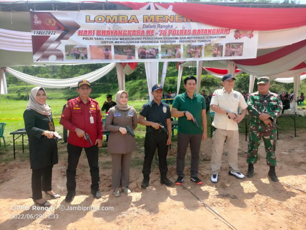 JAMBIPRIMA.COM, BATANGHARI - Memperingati HUT Bhayangkara yang ke 76 Tahun, Polres Batanghari lakukan kegiatan Lomba Menembak, kegiatan tersebut berlangsung di pembuangan Akhir (TPA), tepat nya jalan AMD (29/06/22).