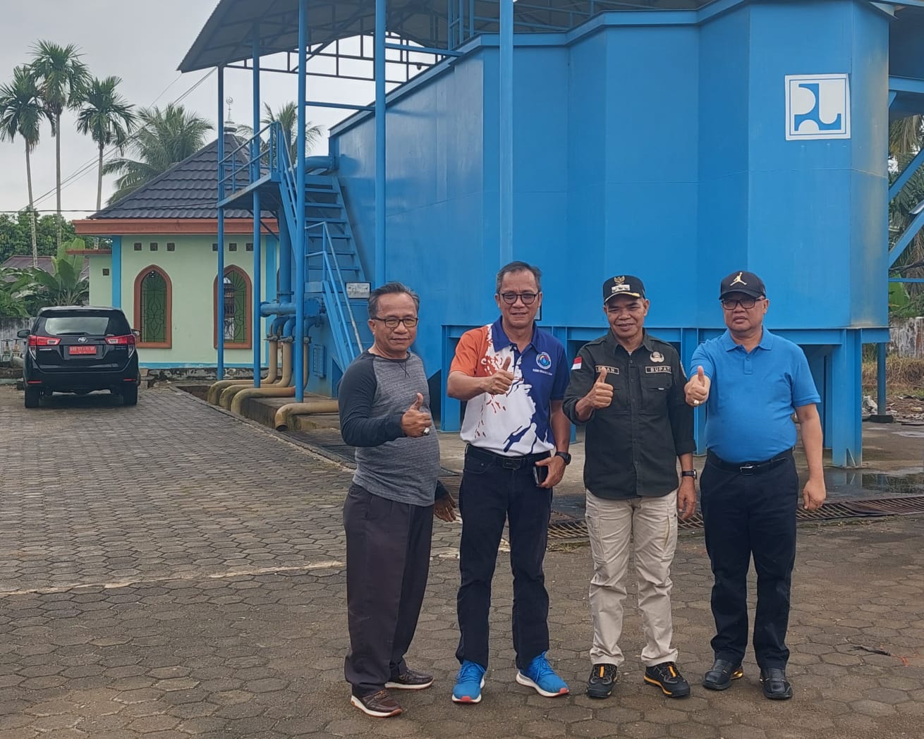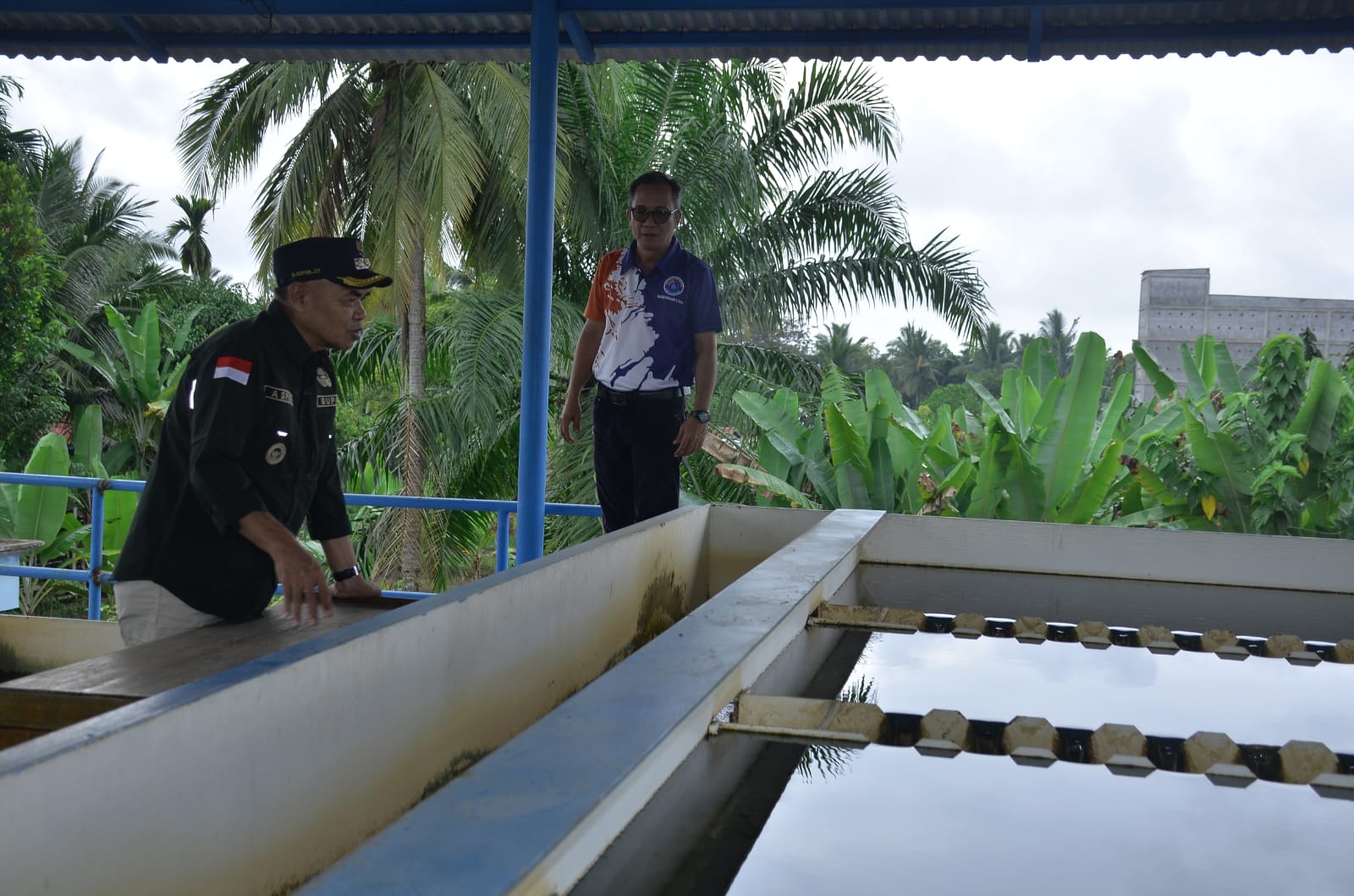 JAMBIPRIMA.COM, TEBO - Untuk memastikan debit air Perusahaan Daerah Air Minum (PDAM) Tirta Muaro, Pj. Bupati Tebo H. Aspan, ST didampngi Dirut PDAM Budi Irawan dan Kadis Perhubungan dan LH Eko Putra meninjau instalasi pengolahan air Perusahaan Air Minum tersebut, Kamis pagi (8/7).