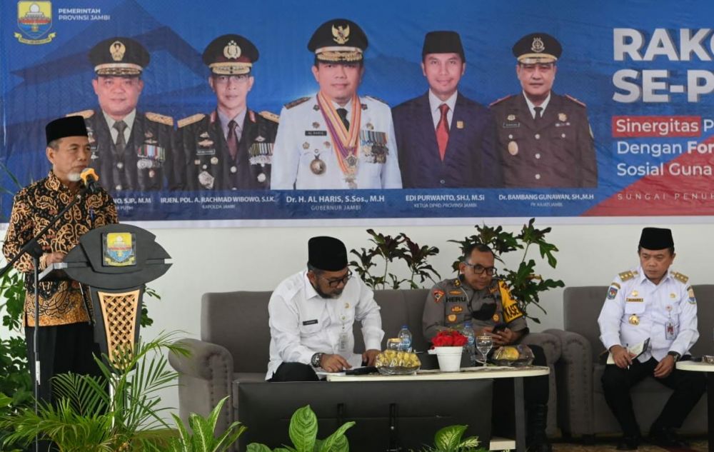 JAMBIPRIMA.COM, MERANGIN- Bupati Merangin H Mashuri, melaporkan empat isu penting kepada Gubernur Jambi H Al Haris pada rapat koordinasi (Rakor) Forkapimda se-Provinsi Jambi, di Auditorium Hotel Grand Kerinci Kota Sungai Penuh, Rabu (13/7).
