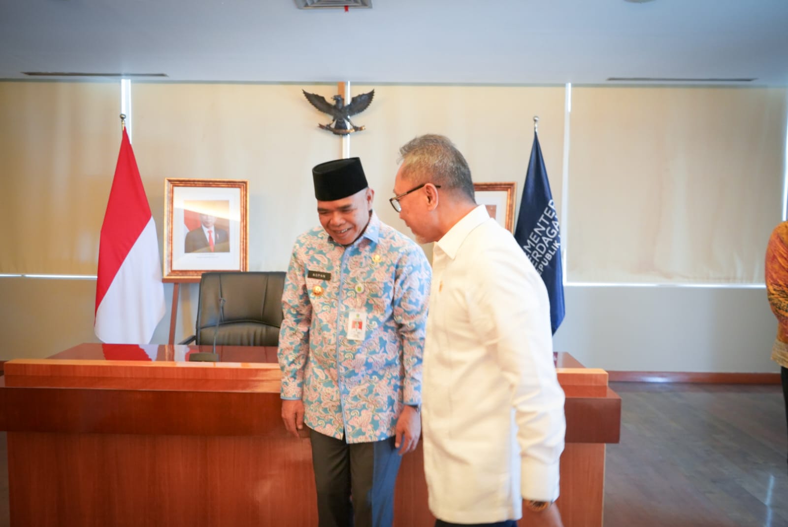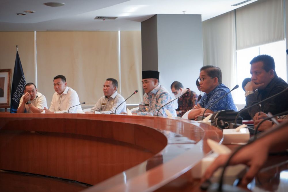 JAMBIPRIMA.COM, TEBO - Pj. Bupati Tebo H. Aspan,. ST. didampingi Anggota DPR RI H. Bakrie Dapil Jambi melakukan audiensi dengan Menteri Perdagangan RI Zulkifli Hasan di Gedung Utama Kantor Kemendag, Jum'at (15/07/2022).