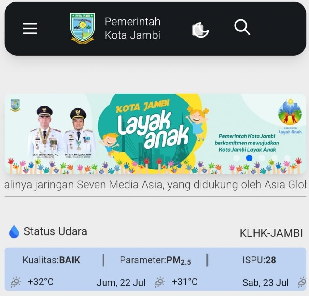 JAMBIPRIMA.COM, JAMBI- Website Pemkot Jambi Jambikota.go.id kini menjadi salah satu penerapan E- Government yang modern. Dimana terdapat banyak informasi yang disediakan website Pemkot Jambi, seperti adanya informasi tentang update data Covid-19, harga pangan dan pasokan, harga kebutuhan pokok dan yang paling unik adalah adanya data gender anak.