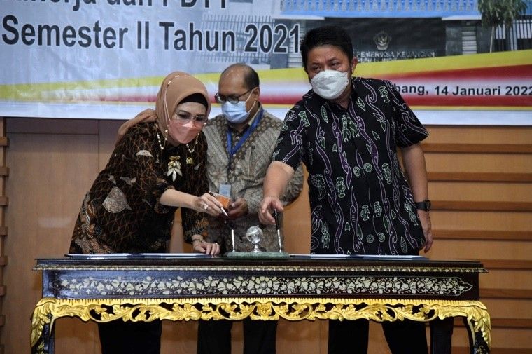 Penyerahan laporan Hasil Pemeriksaan Kinerja dan PDTT Semester II tahun 2021 dihadiri oleh