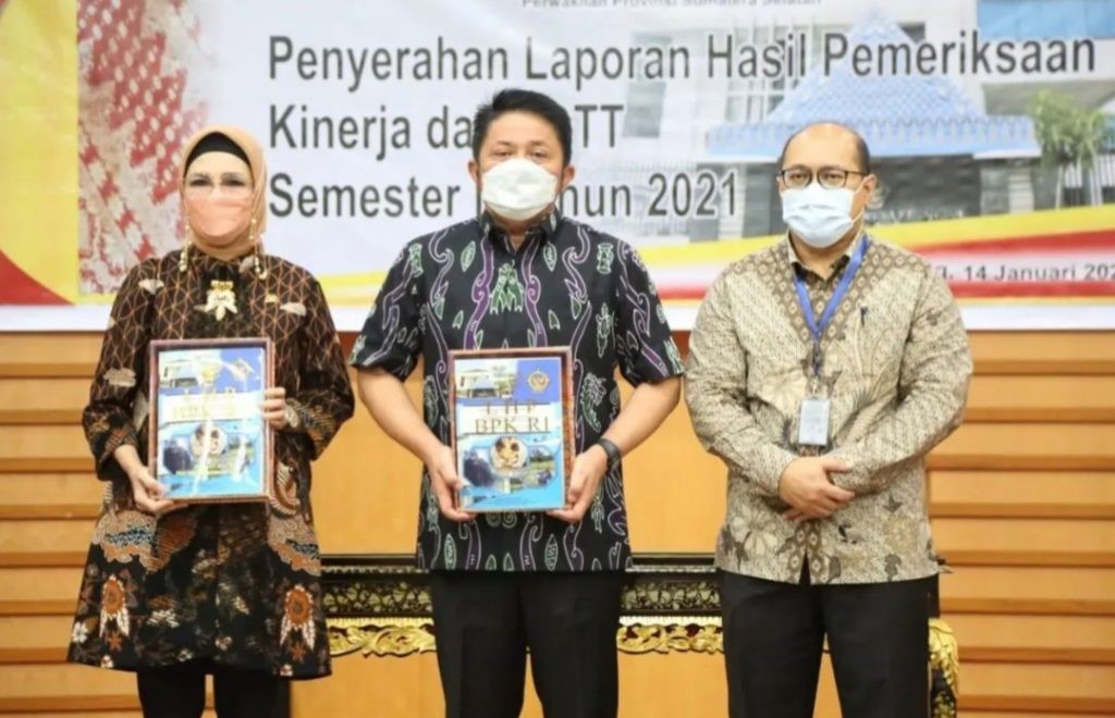 JAMBIPRIMA.COM, Palembang – Ketua DPRD Provinsi Sumatera Selatan, Hj. R.A. Anita Noeringhati, SH., MH, menerima Laporan Hasil Pemeriksaan (LHP) Kinerja dan PDTT Semester II dari Badan Pemeriksa Keuangan (BPK) Perwakilan Prov. Sumsel atas Belanja Daerah Tahun Anggaran 2021