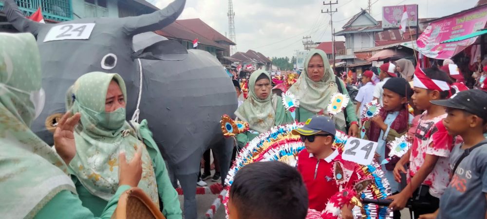 Beragam ditampilkan mulai dari kerbau bantai adat dilakukan setiap menyambut bulan ramadhan dan sepeda hias antik buruk murak seperti SD 31 Rantau panjang.