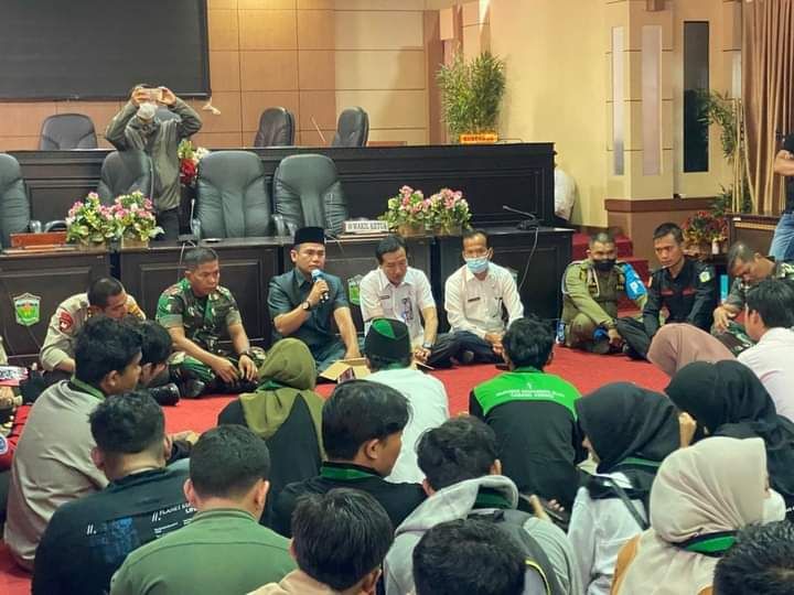 Dalam aksinya para pendemo di sambut langsung oleh Ketua DPRD Kota Sungai Penuh Fajran dan Pemerintah Kota Sungai Penuh yang di wakili oleh Kaban Kesbangpol.