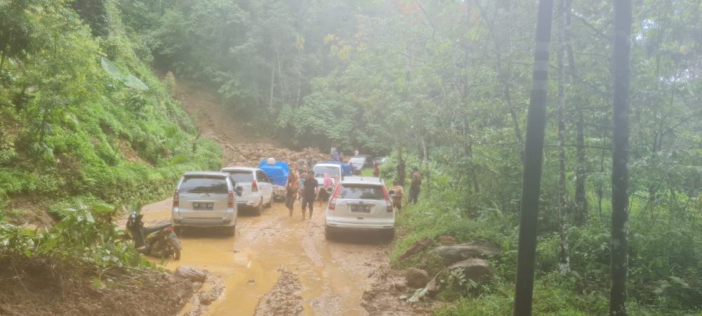 Informasi yang didapatkan longsor terjadi tepatnya Birun, perbatasan kabupaten Kerinci dengan kabupaten Merangin, material lumpur dan kayu tumbang memenuhi badan jalan.