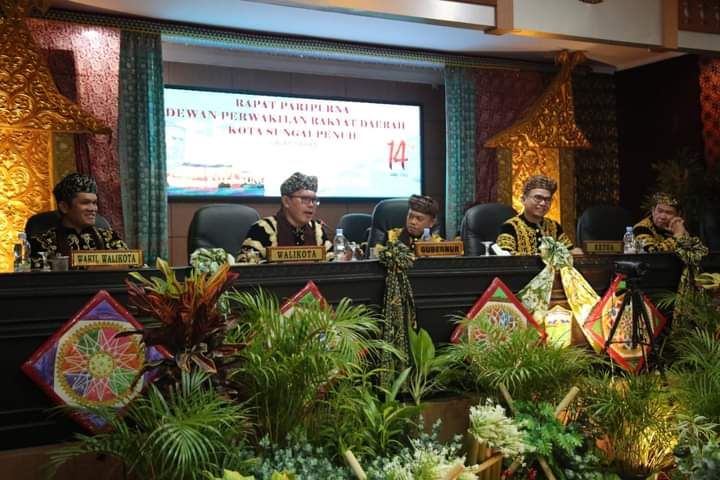 JAMBIPRIMA.COM,SUNGAIPENUH - Pemerintah Kota Sungai Penuh Peringati Hari Jadi Kota Sungai Penuh Ke 14 tahun 2022. Hari Ulang Tahun Kota Sungai Penuh digelar pada Rapat Paripurna Dewan Perwakilan Rakyat (DPRD), Selasa (8/11) di Aula Kantor DPRD Kota Sungai Penuh.