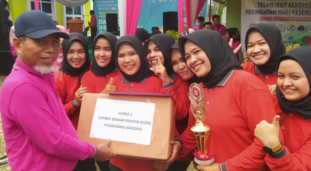 Dipenghujung acara dibagikan doorprize dengan hadiah-hadiah menarik. Puskesmas Bangko yang digerakkan Reni Cs, berhasil menjadi juara pertama lomba senam Rentak Kudo.