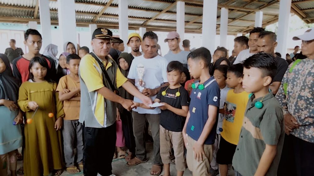 Pantau langsung dilapangan tampak juga dihadiri masyarakat setempat, menyaksikan anak mereka sedang ikut perlombaan yang berhadiah langsung dari pemerintah setempat.(lan)
