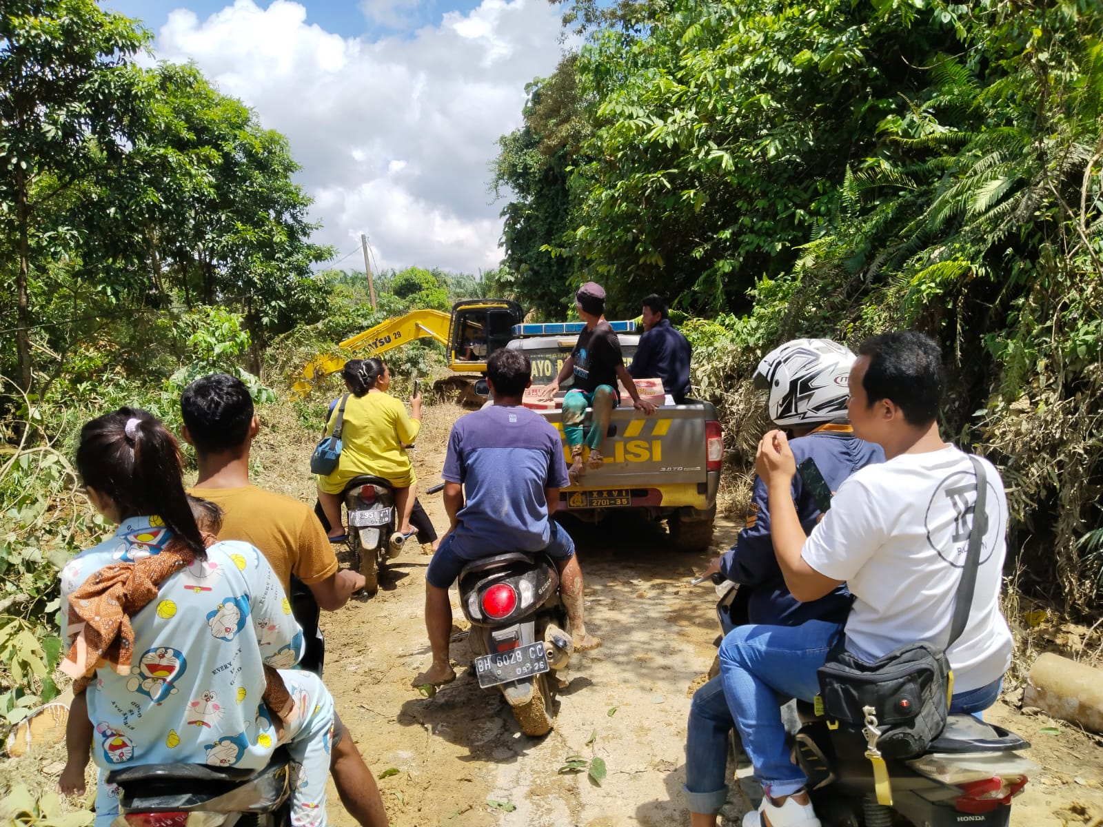 " Terima kasih kepada Bapak- bapak warga Bukit Tedung yang sudah membantu proses pembersihan tanah timbunan longsor ini," ucapnya.