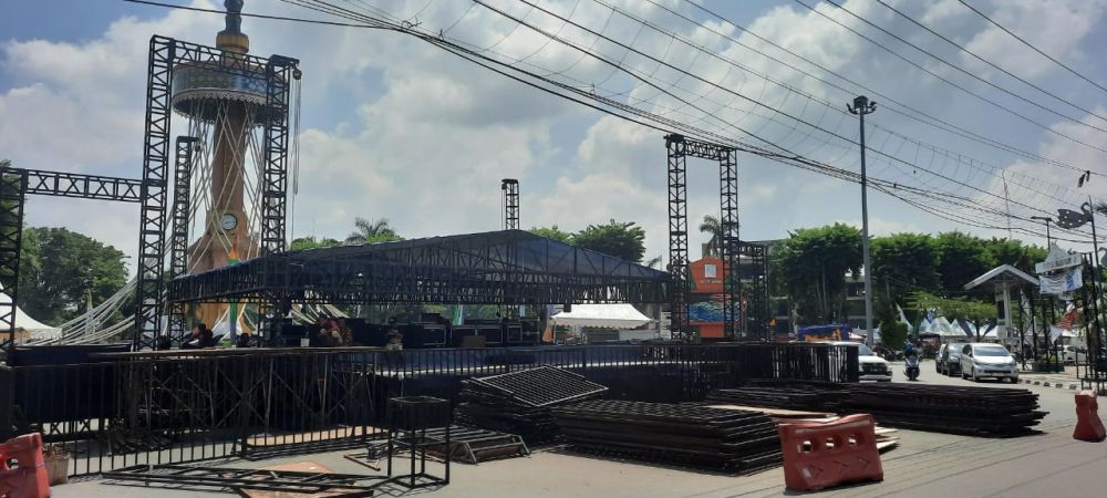 JAMBIPRIMA.COM, JAMBI- Pesat rakyat dalam rangka semarak HUT Pemerintah Kota Jambi ke-77 dan Hari Jadi Tanah Pilih Pusako Batuah Kota Jambi ke-622, akan digelar di kawasan Tugu Keris, Kota Baru, Kota Jambi, Jumat malam (26/5). Panggung besar telah disiapkan oleh panitia di bundaran Tugu Keris. Pemerintah Kota Jambi mendatangkan band tipe-X dan mantan vokalis Jamrud untuk menghibur masyarakat Jambi.