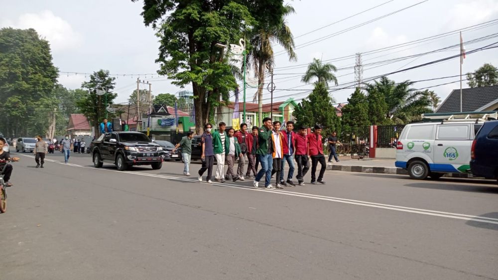 Mereka melakukan orasi selama kurang lebih 45 menit sebelum akhirnya diterima Ketua Komisi I Muhili Amin, Ketua Komisi III Saipul, Sekretaris Komisi II Joni Ismed, anggota Komisi IV Kemas Faried Alfarelly dan Anggota DPRD yang lain.