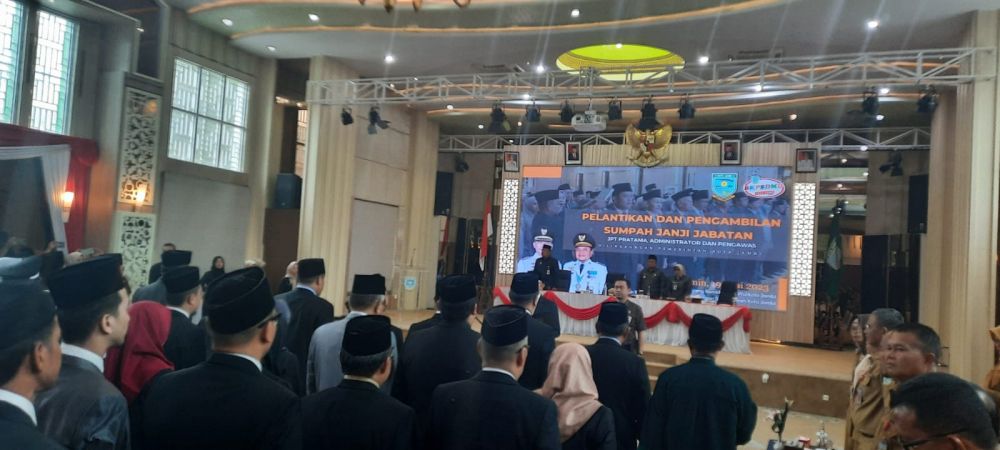 Wali Kota Jambi, Syarif Fasha membacakan sumpah janji jabatan para pejabat yang dilantik. Ia berharap agar pejabat yang dilantik memiliki integritas dan loyalitas, serta segera dilakukan percepatan target program kerja.