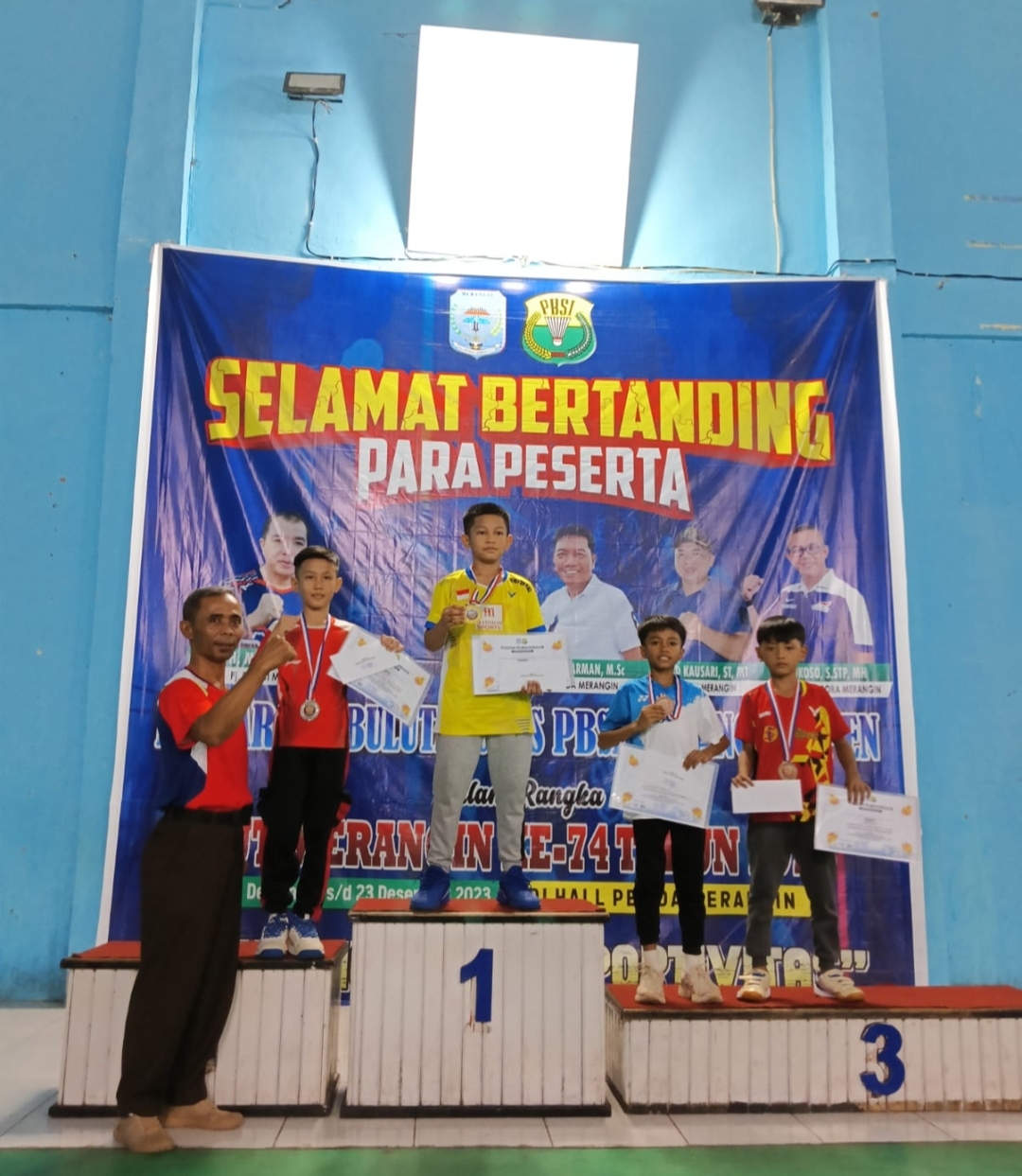 Atlit PB Sungai Bengkal Junior ini berhasil meraih juara di Kelas Usia Dini Putra, Kelas Tunggal Anak- anak Putra dan Kelas Pertandingan Pra Usia Dini Putri.