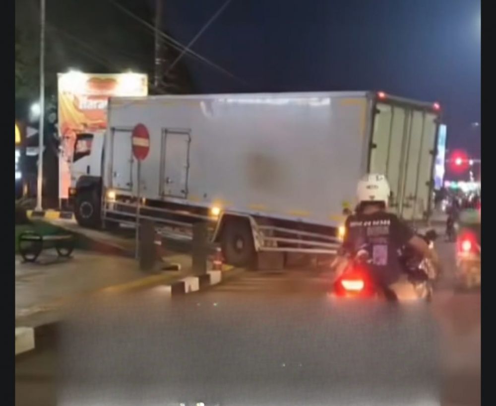 JAMBIPRIMA.COM, KOTAJAMBI – Sebuah truk tronton nekat melintas di kawasan Kota Jambi pada Sabtu malam (11/1/2025), memasuki area McDonald's di kawasan Sipin. Insiden ini menyebabkan sejumlah kabel di sekitar lokasi putus akibat tersangkut dengan box truk berukuran besar.