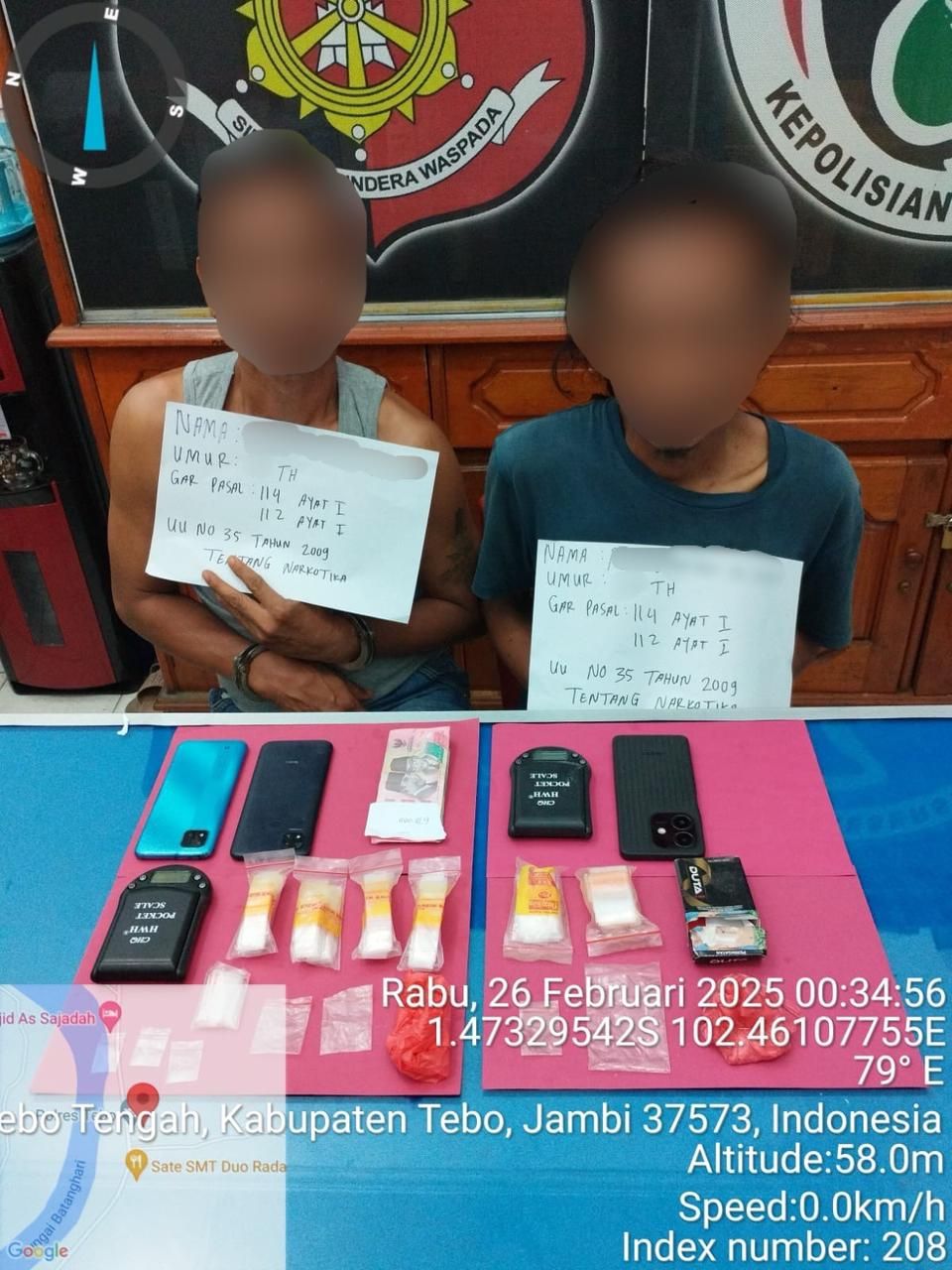 Kapolres Tebo AKBP Dr I Wayan Arta Ariawan S.H, S.I.K,M.H melalui Kasat Resnarkoba AKP Jeki Noviardi S.H,M.B menjelaskan bahwa pengungkapan kasus ini berawal dari penyelidikan tim di daerah Tebo Ulu. Sekira pukul 17.00 WIB, tim berhasil menangkap pelaku pertama, HS(45), di RT 04, Teluk Keloyang II, Desa Pulau Panjang. Dari hasil penggeledahan, ditemukan barang bukti berupa tiga paket kecil narkotika jenis sabu dengan berat bruto 0,57 gram, timbangan digital, sejumlah plastik klip, uang tunai Rp670.000, serta dua unit ponsel.
