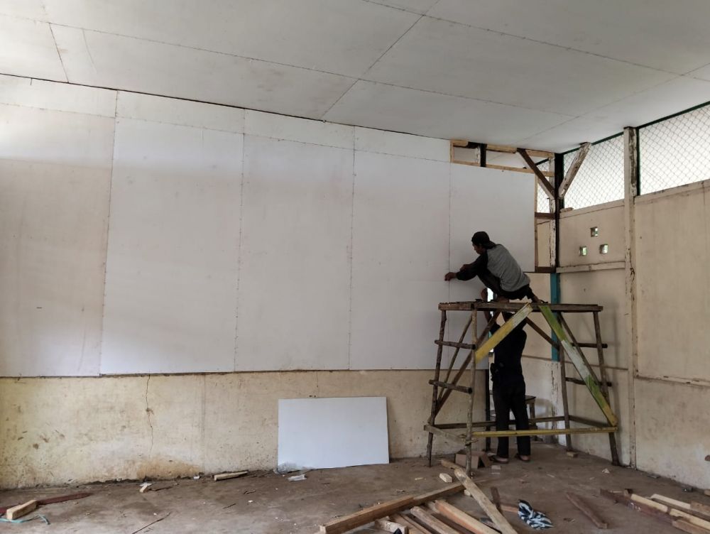 Pemasangan Dinding Pembatas Kelas Madrasah Ibtidaiyah Nurul Falah Teluk Kuali