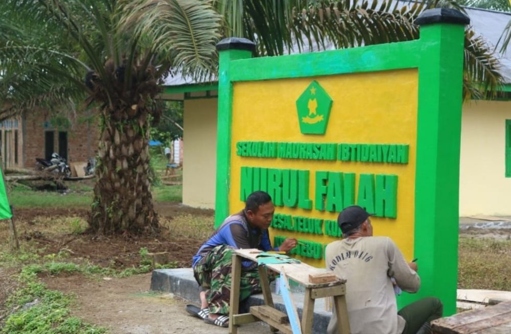 Salah satu upaya penyempurnaan tersebut adalah pengecatan papan nama Madrasah Ibtidaiyah Nurul Falah di Desa Teluk Kuali, Kecamatan Tebo Ulu, Kabupaten Tebo, Selasa 18 Maret 2025.