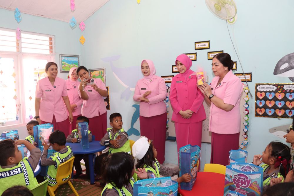JAMBIPRIMA.COM, MERANGIN – Jambi. Ketua Pengurus Yayasan Kemala Bhayangkari (YKB) Daerah Jambi, Ny. Evi Krisno Siregar, melakukan kunjungan kerja ke TK Kemala Bhayangkari 36 Merangin, pada Rabu (23/04/2025).