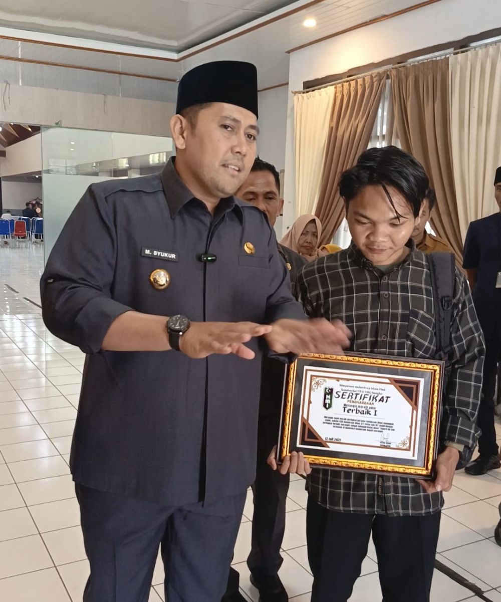 Sandra Wandi, aktivis kampus gegerkan DPRD Merangin usai menyerahkan sertifikat Terbaik I. Sertifikat tersebut diberikan atas kendaraan dinas menunggak pajak sebanyak 628 kendaraan.