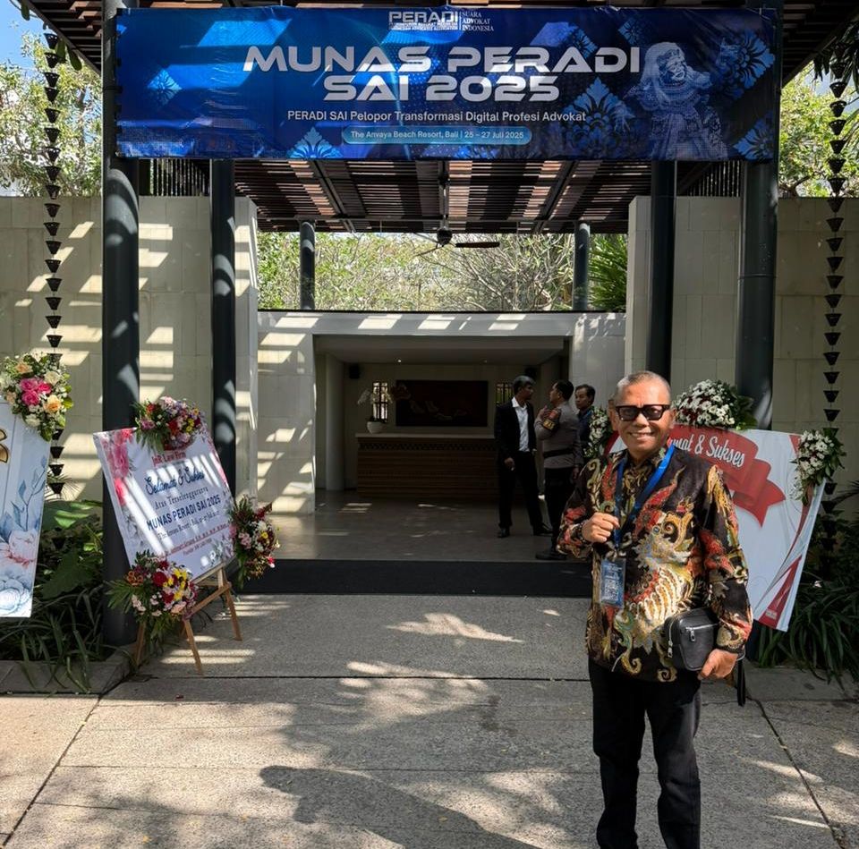 JAMBIPRIMA.COM,- Ketua DPC PERADI SAI Provinsi Jambi, Adri,.S.H., M.H menghadiri Musyawarah Nasional (Munas) IV PERADI SAI (Perhimpunan Advokat Indonesia – Suara Advokat Indonesia) yang digelar di Bali pada tanggal 25 hingga 27 Juli 2025. Forum tertinggi organisasi advokat tersebut diikuti oleh ratusan advokat dari seluruh Indonesia.