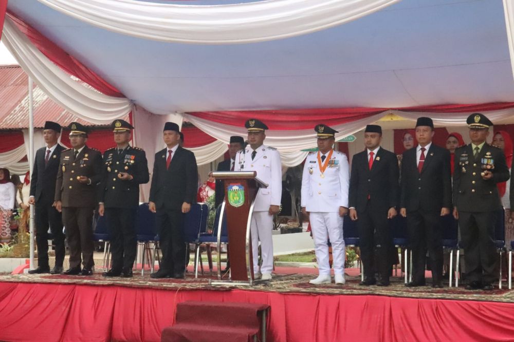 Upacara peringatan HUT RI yang dilaksanakan di Stadion Sri Maharaja Batu, Desa Bedaro Rampak, Kecamatan Tebo Tengah diikuti oleh unsur Forum Komunikasi Pimpinan Daerah (Forkopimda) Kabupaten Tebo beserta jajarannya.