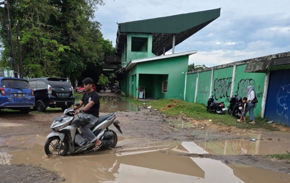 “Kondisinya sangat memprihatinkan. Becek di mana-mana, banyak genangan air. Ini jelas mengganggu aktivitas olahraga,” tegasnya.