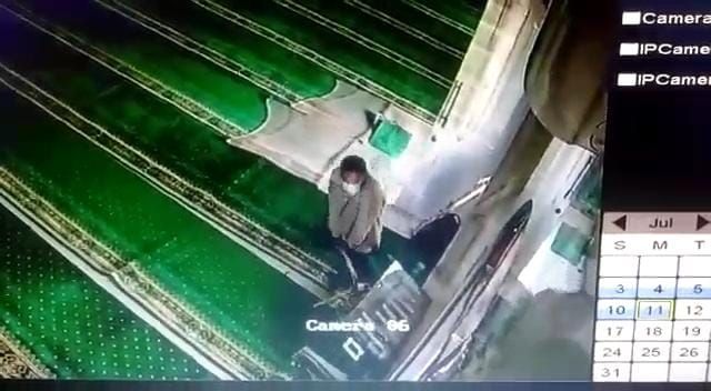 Aksi pencurian itupun terekam oleh kamera pengintai CCTV yang ada didalam Masjid. Dimana pelaku menggunakan masker, kemeja panjang, dan celana jeans.