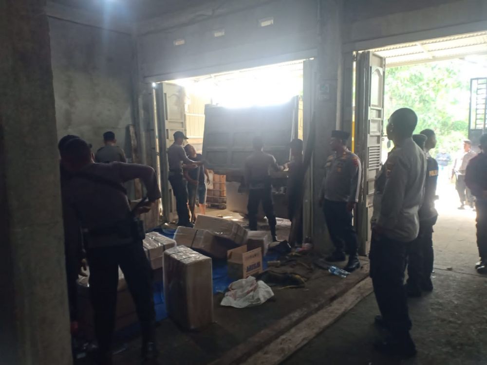 "Ya, barang bukti diduga rokok ratusan rokok diduda illegal, ratusan derigen BBM Solar dan puluhan pupuk kita amankan di Mapolres,"kata Kasat Reskrim.