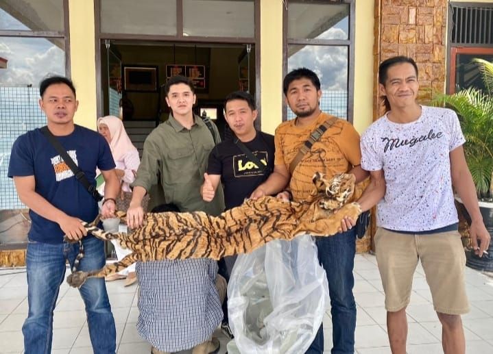Penangkapan YP (39) Seorang warga Kecamatan Balai Ampek Baleh, Pesisir Selatan. Saat hendak menjual seekor Kulit Harimau Sumatera di kota Sungai Penuh.
