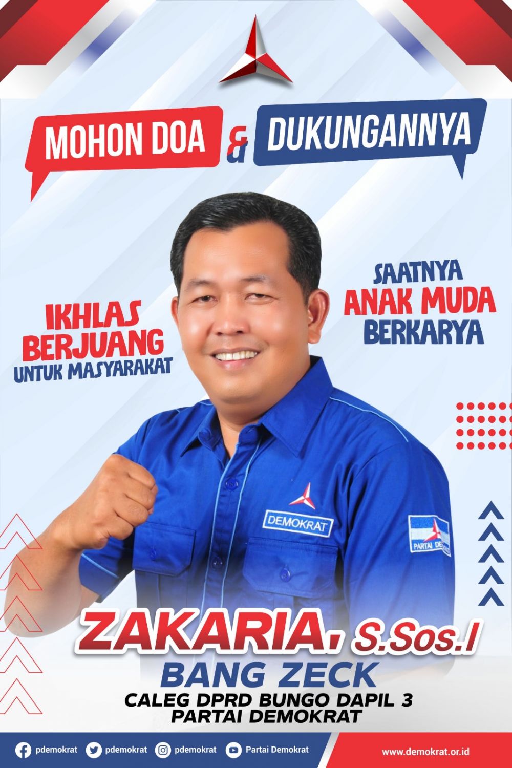 Putra dari Pasangan Alm Nazarudin Bin Umar dan Ramlah ini, sudah tidak perlu diragukan lagi kiprahnya di masyarakat. Tentu majunya Zakaria ini siap membawa yang lebih baik bagi masyarakat, khusu di dapil tiga dan umumnya kabupaten Bungo.