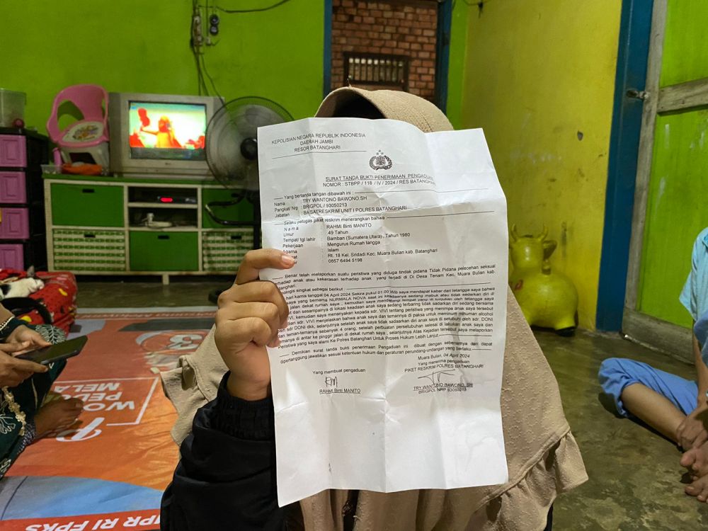 Atas kejadian itu Ibu korban sudah melakukan visum dan melaporkan ke pihak kepolisian Resor Batang Hari dengan nomor pengaduan STBPP/118/IV/2024/Res Batanghari.