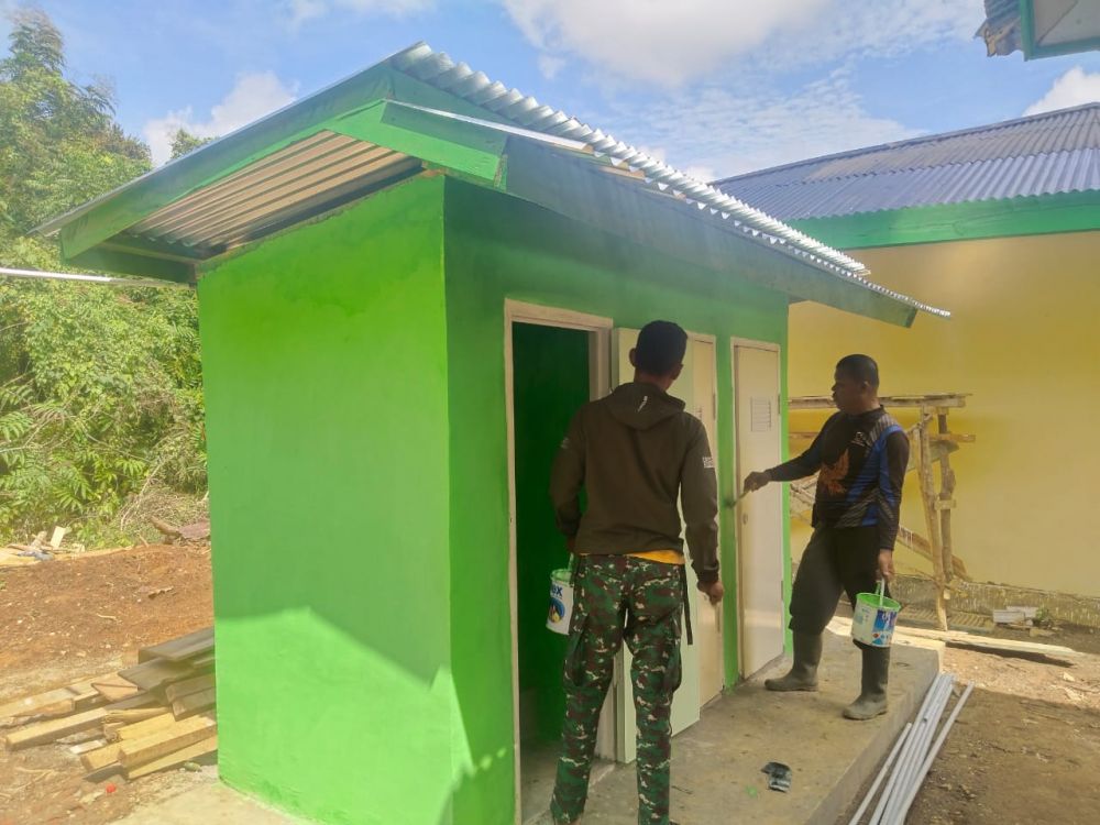 JAMBIPRIMA.COM, TEBO – Dalam rangka mendukung terciptanya lingkungan belajar yang bersih, sehat, dan nyaman, Satgas TMMD Ke-123 Kodim 0416/Bute melakukan pengecatan fasilitas Mandi, Cuci, Kakus (MCK) Madrasah Ibtidaiyah Nurul Falah, Desa Teluk Kuali, Kecamatan Tebo Ulu, Kabupaten Tebo, Selasa 11 Maret 2025.
