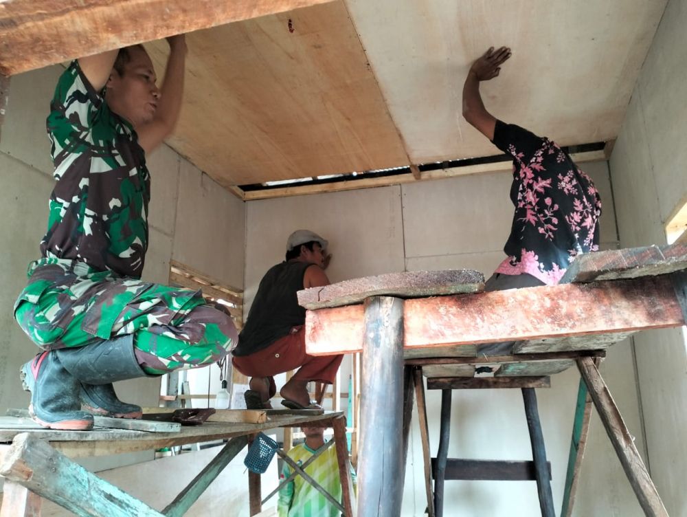 Proses pemasangan plafon ini dilakukan dengan tekun dan cermat oleh anggota Satgas TMMD yang terlatih. Mereka bekerja secara terorganisir dan efisien untuk memastikan bahwa setiap langkah dalam pemasangan plafon dilakukan dengan baik dan sesuai standar.