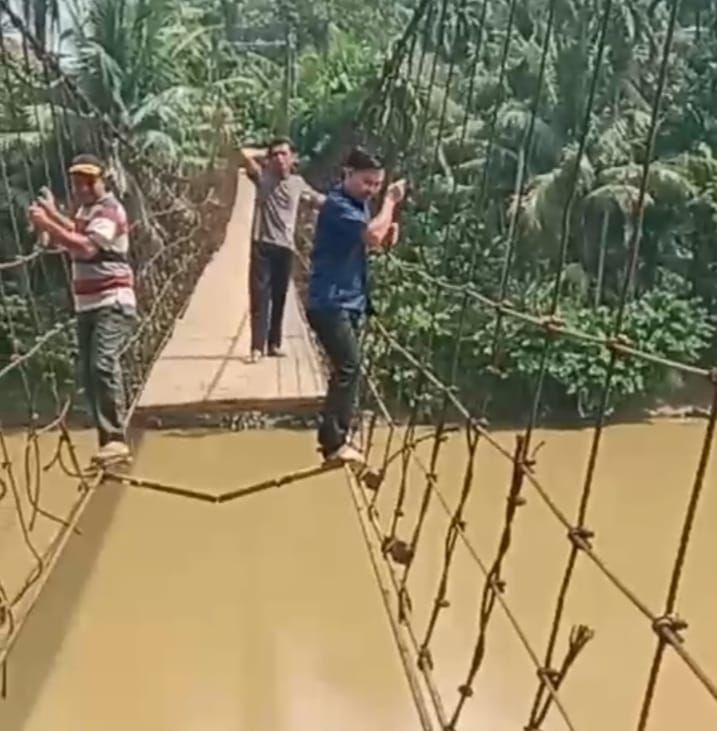 Viralnya Jembatan Desa Limbur Merangin banyak pelajar, guru, pejabat, Anggota DPRD menyeberang dan di vidiokan hingga menjadi perbincangan ditengah masyarakat sampai ke luar provinsi Jambi.
