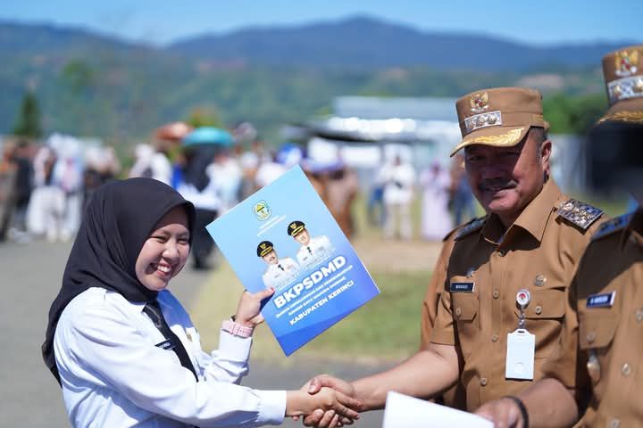 JAMBIPRIMA.COM, KERINCI - Surat Keputusan (SK) pengangkatan 348 Calon Pegawai Negeri Sipil (CPNS) formasi tahun 2024, resmi diserahkan oleh Bupati Kerinci di Lapangan Perkantoran Bukit Tengah, Kecamatan Siulak, Senin (19/05/2025).