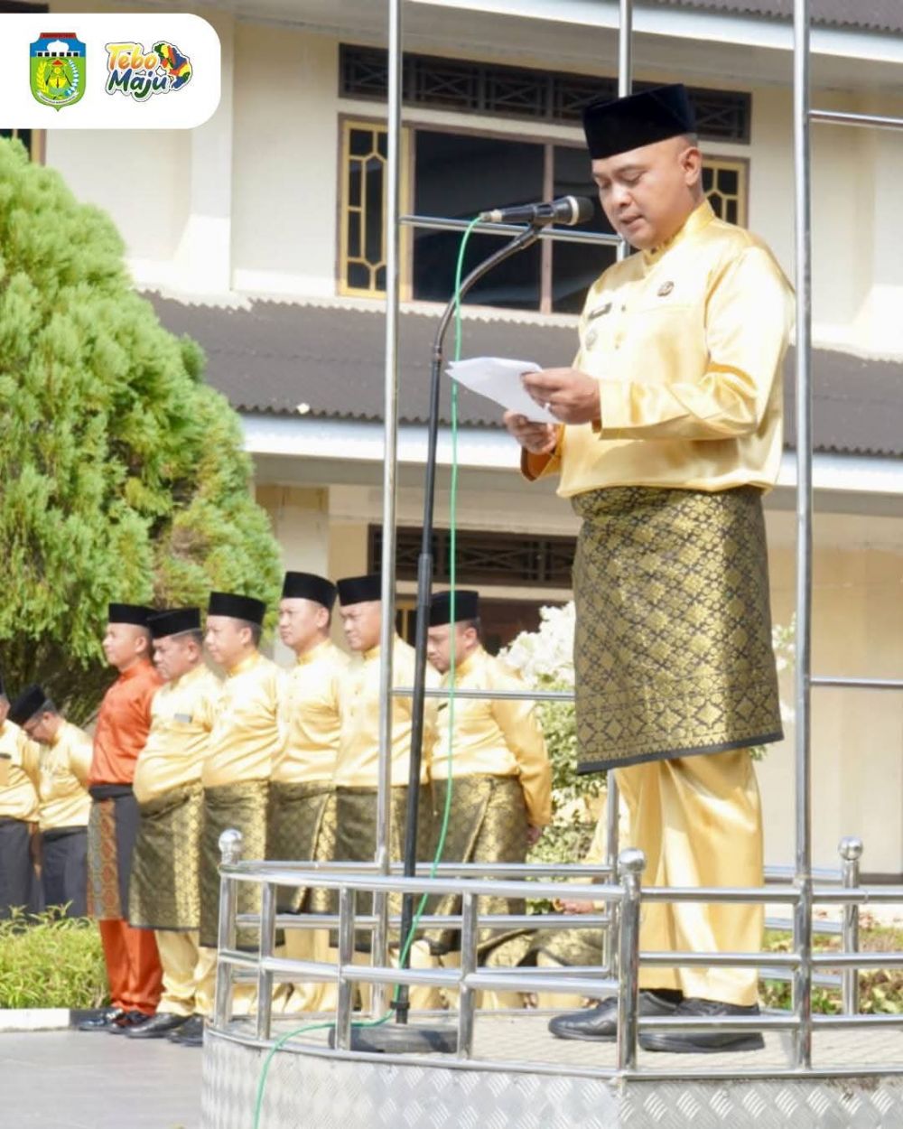 JAMBIPRIMA.COM, TEBO – Bupati Tebo, Agus Rubiyanto, SE., MM, memimpin langsung Upacara Peringatan Hari Ulang Tahun (HUT) ke-26 Kabupaten Tebo yang dipusatkan di Lapangan Kantor Bupati Tebo, pada Senin 13 Oktober 2025.