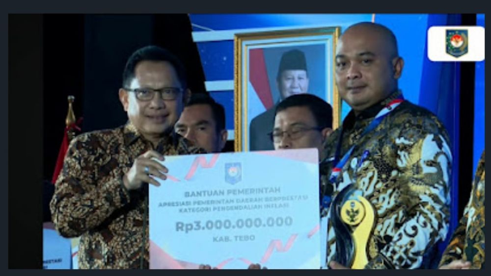 Penghargaan tersebut diterima langsung oleh Bupati Tebo sebagai bentuk pengakuan atas kinerja pemerintah daerah yang dinilai mampu menjalankan strategi pengendalian inflasi secara efektif, terukur, dan berkelanjutan.